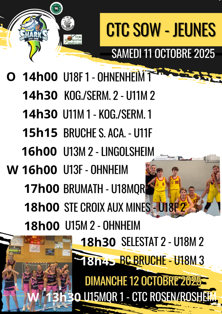 Les matchs se jouent dans les différents clubs alors regardez bien la lettre qui précède l’horaire pour les matchs à domicile. S = Schaeffersheim, O = Osthouse, W = Westhouse.